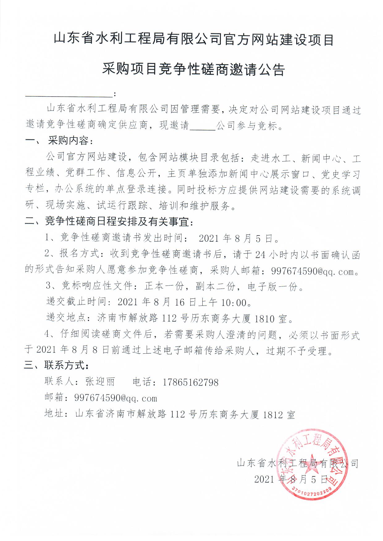 山東省水利工程局有限公司官方網站建設項目采購項目競爭性磋商邀請公告