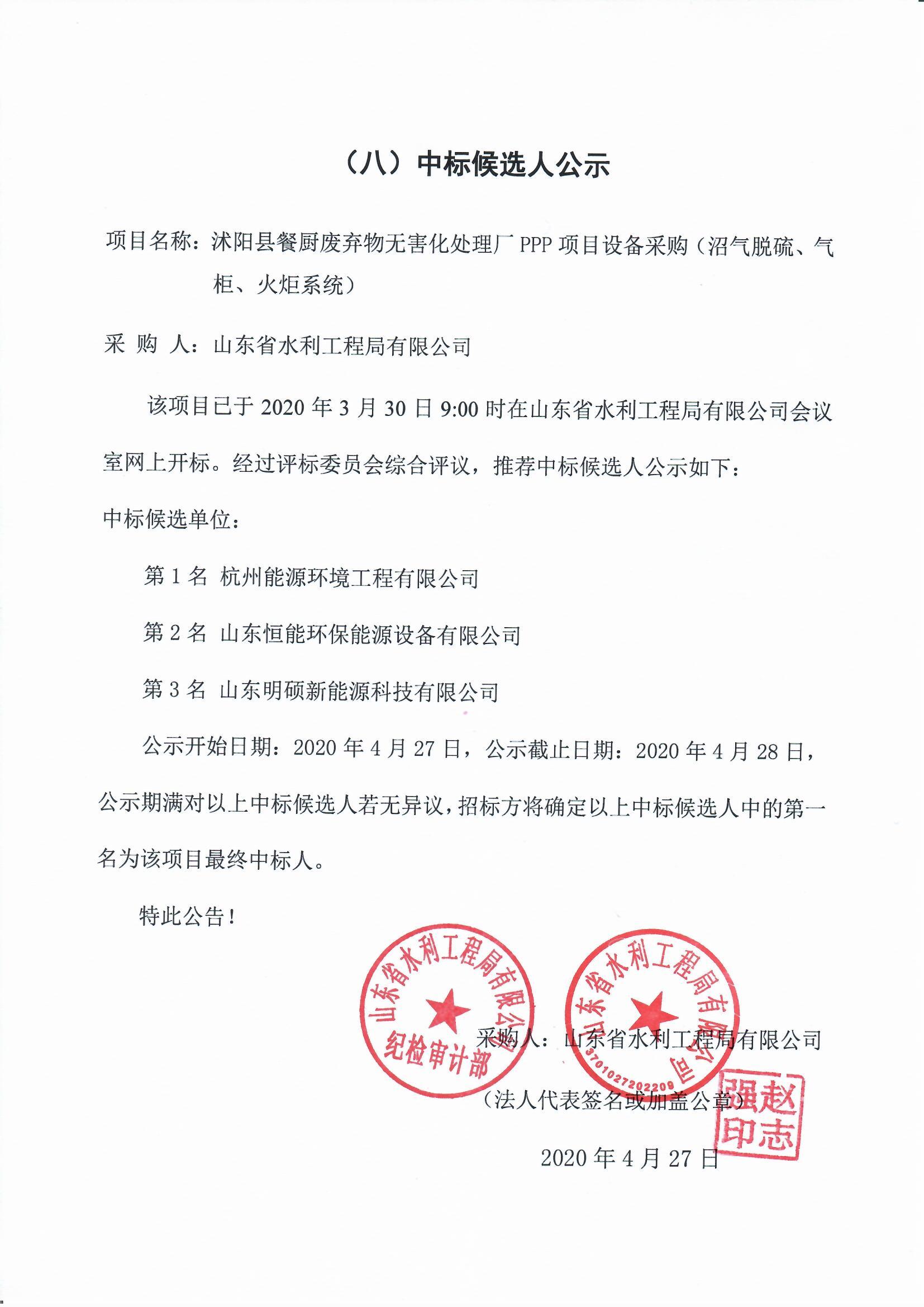沭陽縣餐廚廢棄物無害化處理廠PPP項目設(shè)備采購中標(biāo)候選人公示